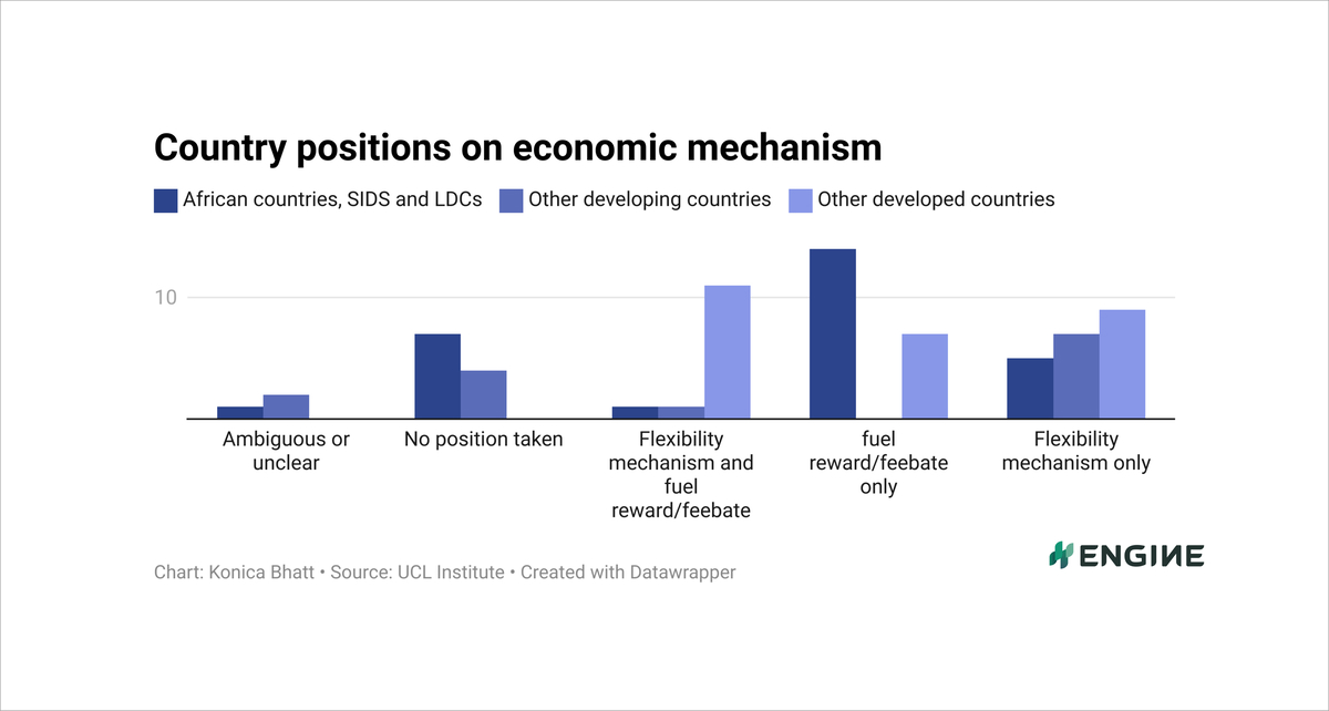 During discussions on economic measures at the IMO's GHG working committee, 21 member states across various income levels supported a flexibility mechanism without a feebate component. Another 21 countries, primarily lower- and higher-income nations, favoured only a feebate mechanism. 13 countries, mostly developed nations, endorsed a combination of both mechanisms, while 14 countries remained undecided.