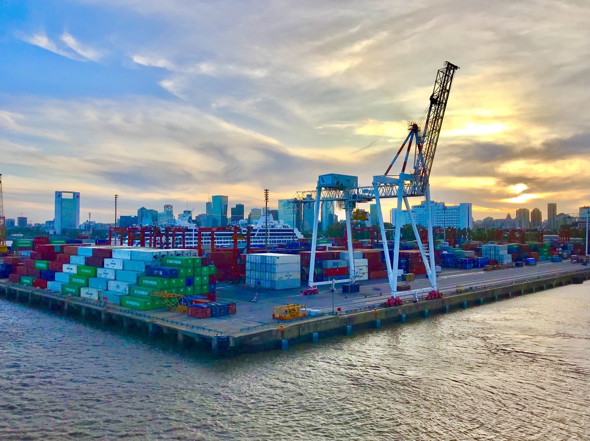IMAGE: Cranes and shipping containers at a port in Argentina. Getty Images.