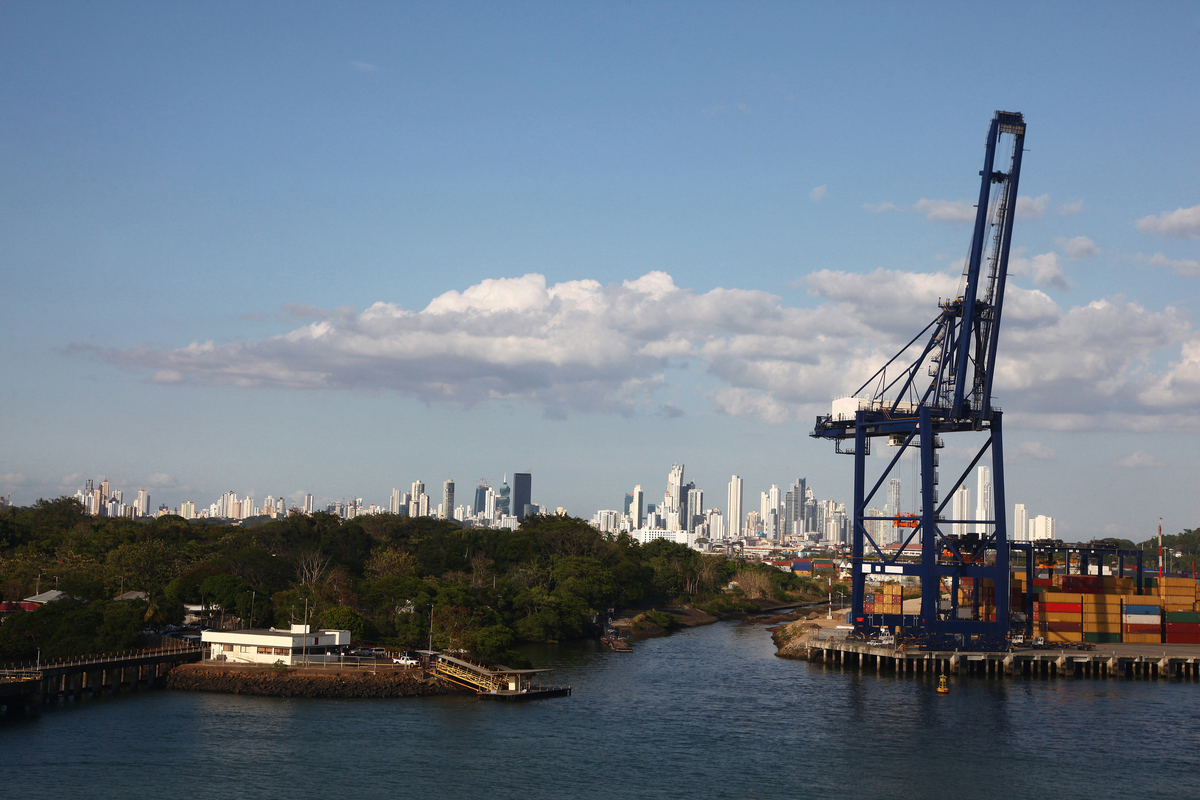 IMAGE: Cargo port with cranes and shipping containers along the entrance to the Panama Canal. Getty Images.