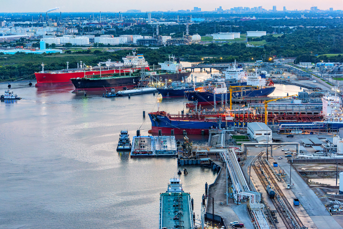 IMAGE: A group of tankers in port along the Houston Ship Channel, Texas. Getty Images
