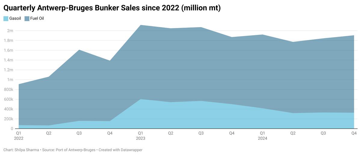 Antwerp-Bruges’ conventional bunker sales down 8% in 2024