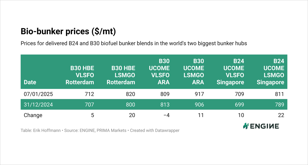 Biofuel Bunker Snapshot: Bio-blend prices rise on fossil fuel gains