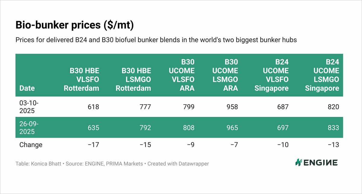 Biofuel Bunker Snapshot: Bio-bunker prices lower in major ports
