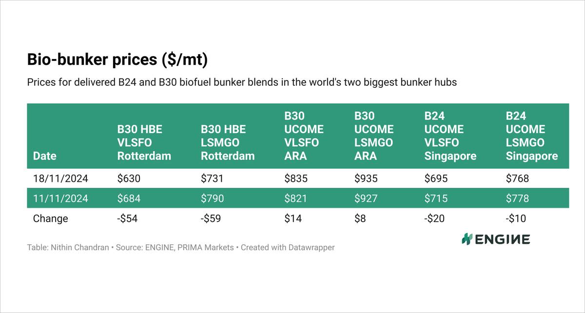 Biofuel Bunker Snapshot: POMEME blends outshine UCOME with bigger Dutch rebates