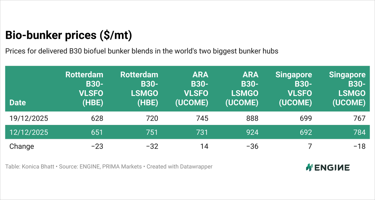 Biofuel Bunker Snapshot: Rotterdam’s B30-LSMGO inches towards $700/mt