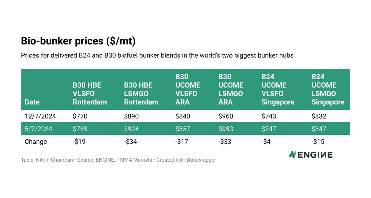Biofuel Bunker Snapshot: Singapore’s B24 premium over VLSFO widens