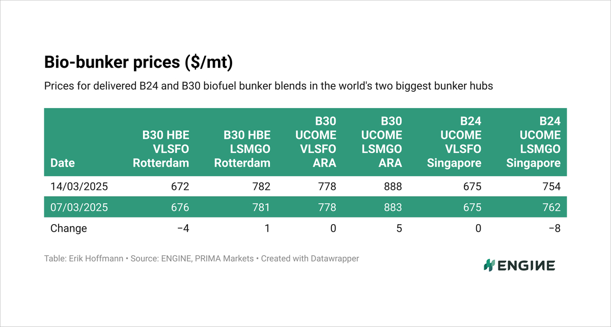 Biofuel Bunker Snapshot: Slight bio price gains countered by fossil declines