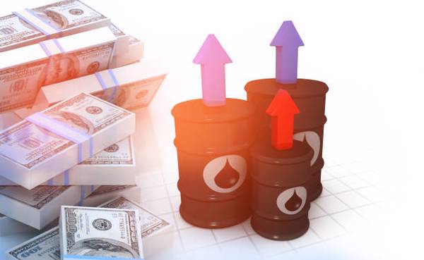 PHOTO: Oil barrels with a stack of dollars. Getty Images