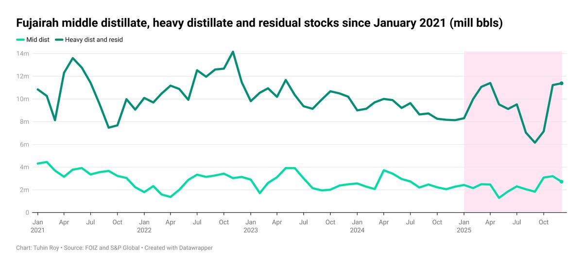 API data showed that stockpiles rose by 2.4 million bbls in the week ending 19 December.