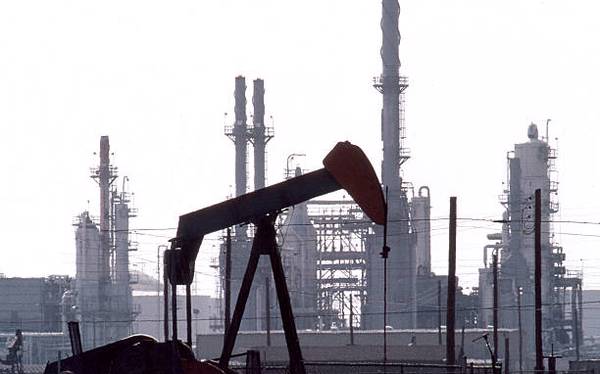 PHOTO: An oil refinery behind a pumpjack. Getty Images