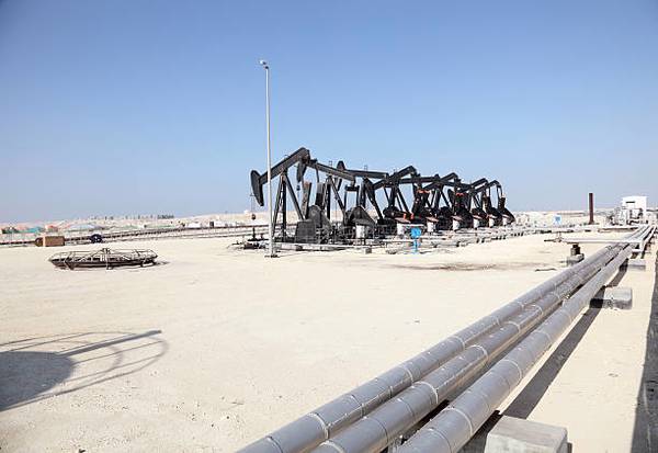 PHOTO: Oil pump jacks in the desert of Bahrain, Middle East. Getty Images