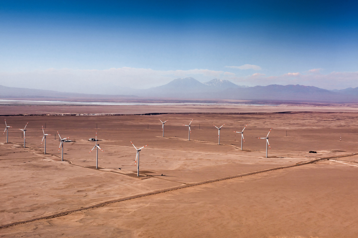 PHOTO: Wind power production in Calama in Chile's Antofagasta region. Getty Images