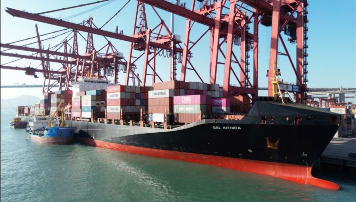 PHOTO: A.P. Moller–Maersk’s container ship GSL Kithira receiving biofuel stem. LinkedIn of Chimbusco Pan Nation
