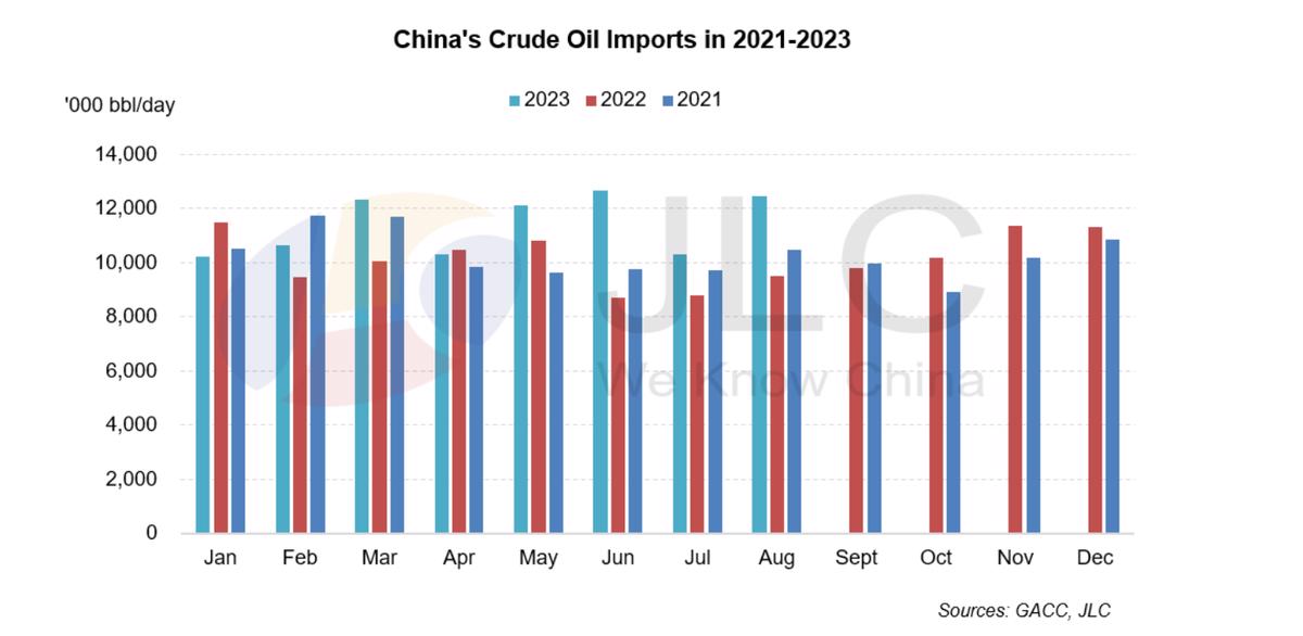PHOTO: China's crude oil imports in 2021-2023. JLC
