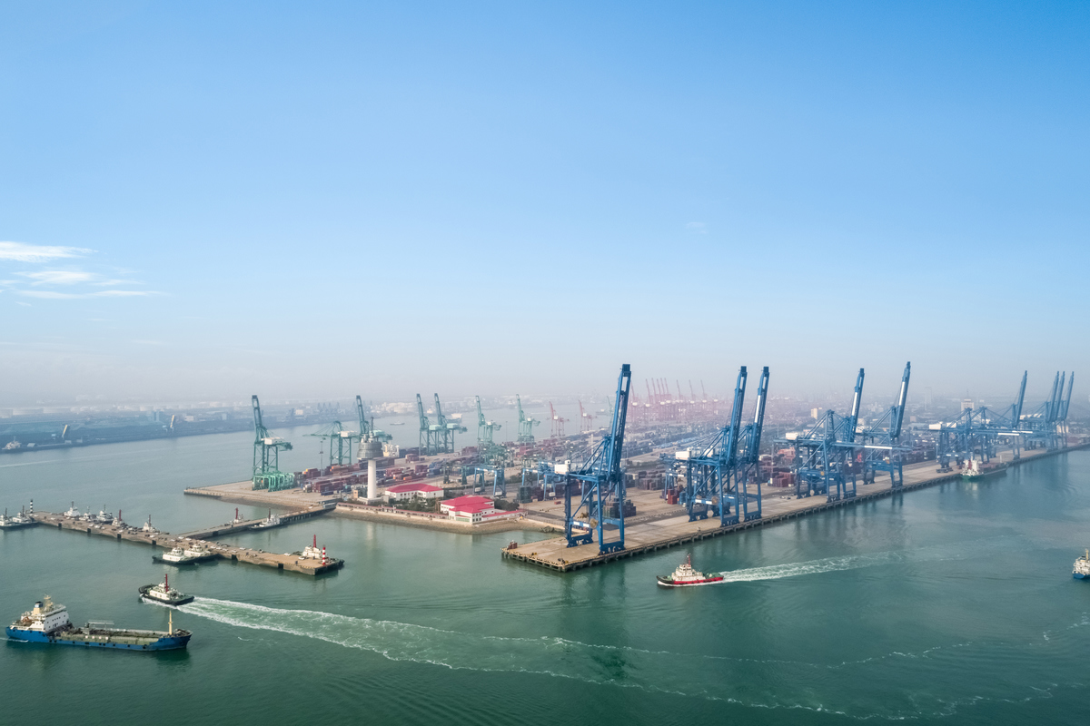 PHOTO: Aerial view of a container terminal in Tianjin port, China. Getty Images