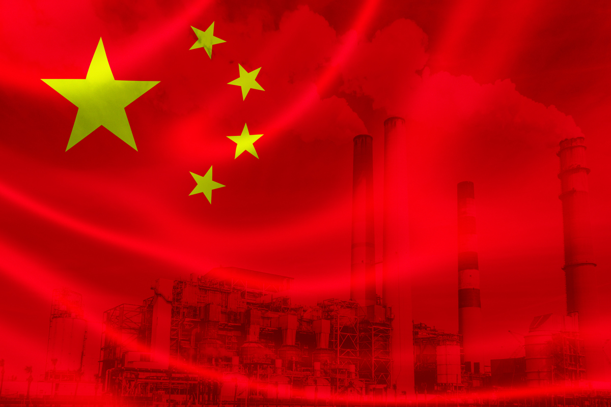 IMAGE: China's flag on satin and oil refineries in the background. Getty Images