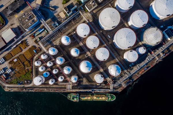 PHOTO: Aerial view of oil refinery and fuel storage tanks in Hong Kong, China. Getty Images