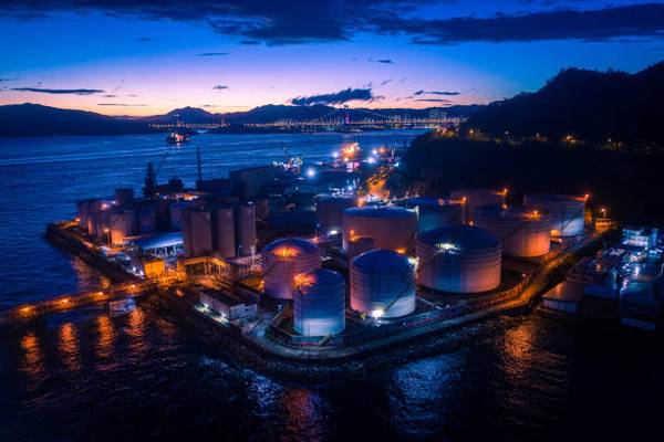 PHOTO: An oil refinery plant captured at night. Getty Images