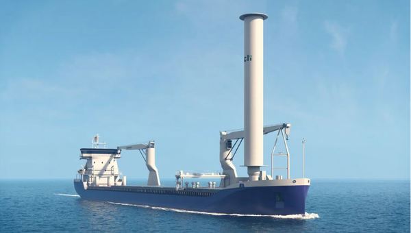 The 8,500-dwt vessel will feature a rotor sail—a modern version of the Flettner rotor that uses the Magnus effect to generate thrust from wind, allowing the main engine to reduce power during favorable wind conditions and thus lower fuel consumption without compromising speed.