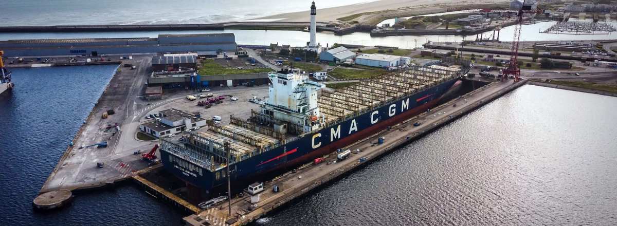 PHOTO: A CMA CGM vessel at Damen Shiprepair Dunkerque. Damen Shipyards Group