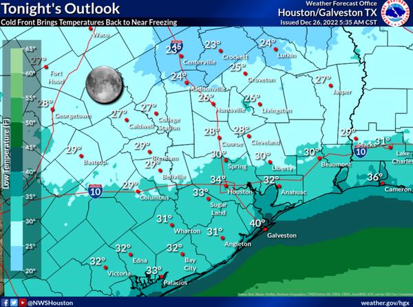Strong winds and low temperatures last week caused low wind chills in the Houston-Galveston region, the US Coast Guard said in its latest status report. It forecast freezing temperatures will return in the coming days.