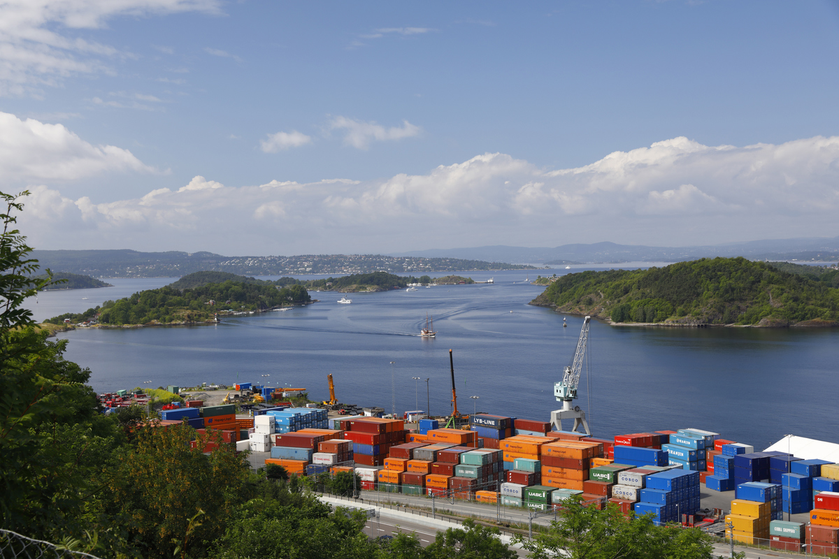 PHOTO: Southern view from Oslo's Ekeberg Park. A colorful container terminal in the front of the Oslofjord. Getty Images