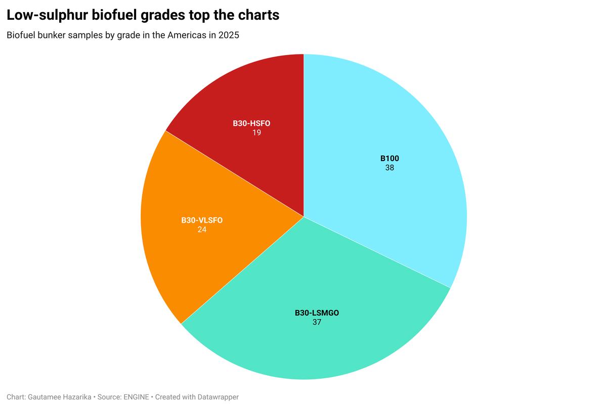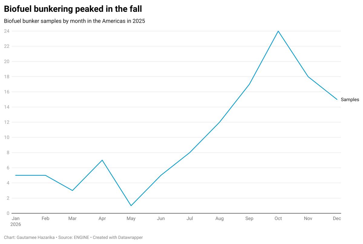 There were six samples from New York, which accounted for roughly 5% of total biofuel bunker activity in the Americas in 2025.