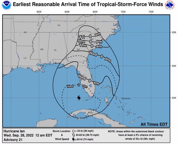 MAP: Hurricane Ian's projected path. National Hurricane Center