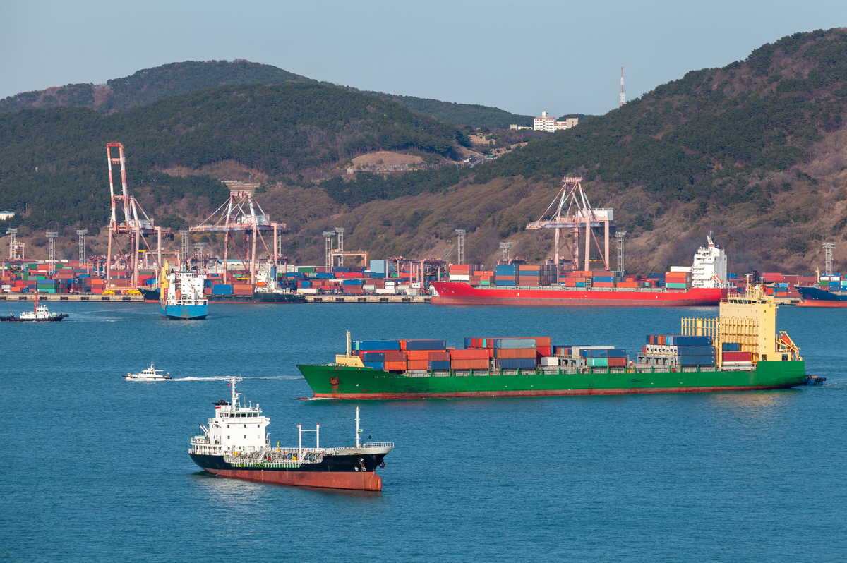 IMAGE: Industrial cargo ships in Busan port area, South Korea. Getty Images