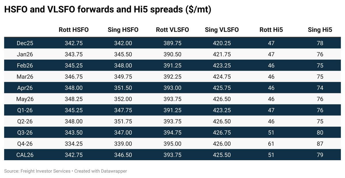 Over in Malaysia’s Port Klang, VLSFO and LSMGO remain readily available — especially for smaller prompt parcels — while HSFO continues to face limited supply.