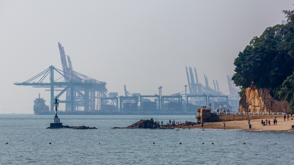 IMAGE: View on the Port of Xiamen, China with a ship and cranes. Getty Images