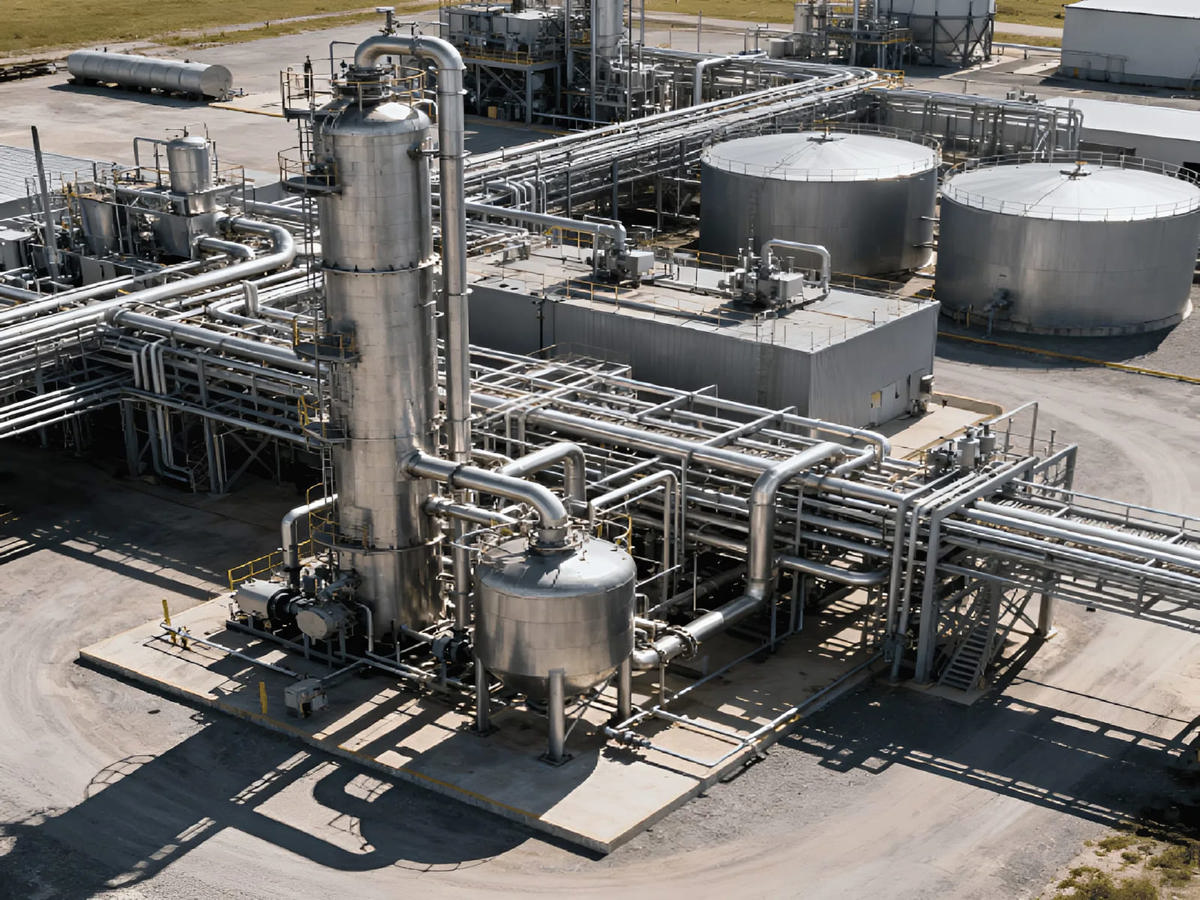 IMAGE: Illustration of a biorefinery. ENGINE via Perplexity AI