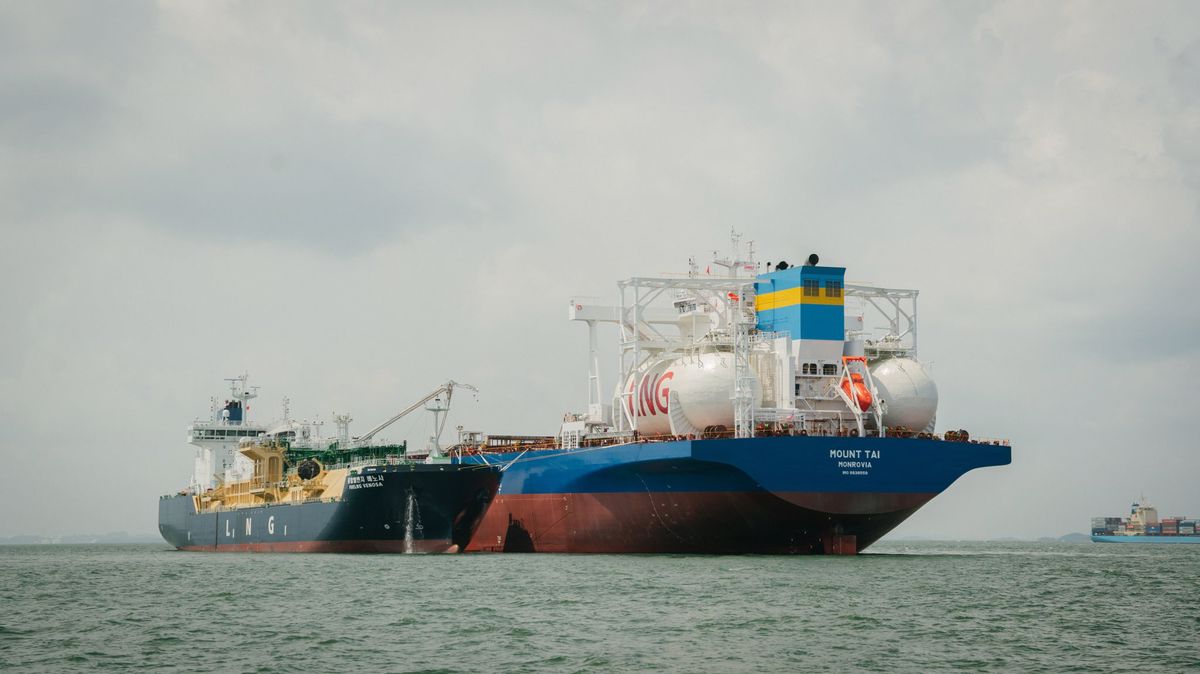 PHOTO: LNG bunker barge FueLNG Venosa delivering fuel to M/V Mount Tai in Singapore. FueLNG
