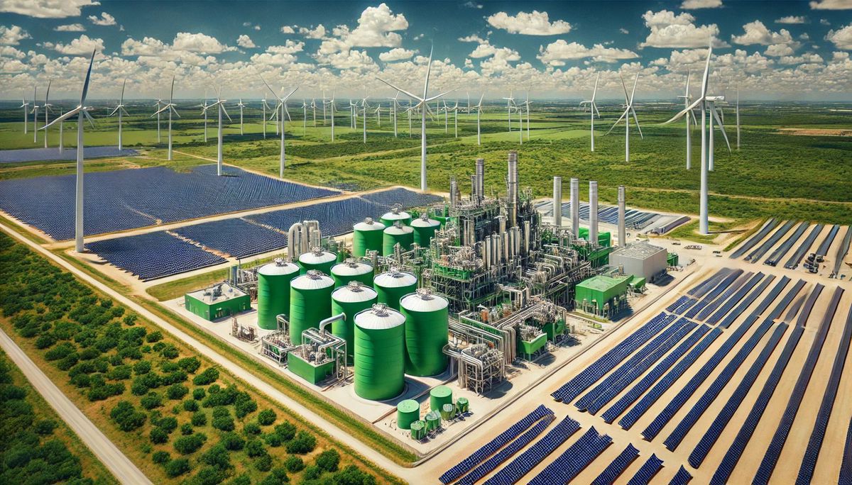 The facility, spanning 22,000 acres, will produce 120,000 mt/yr of e-methanol using co-located 500 MW of renewable energy combined with biogenic CO2.