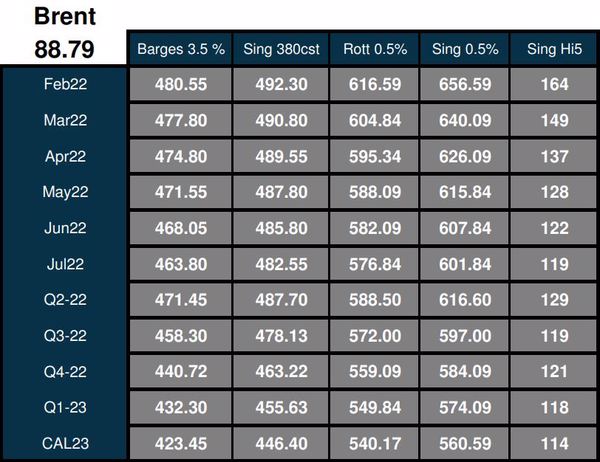 The front-month Singapore FOGO spread ended at -102.50, and the front-month Euro FOGO spread ended at -150.00.