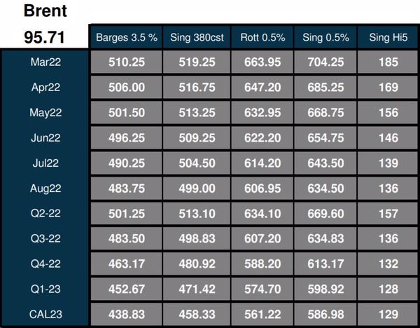 The front-month Singapore FOGO spread ended at -108.75, and the front-month Rotterdam FOGO spread ended at -156.50.