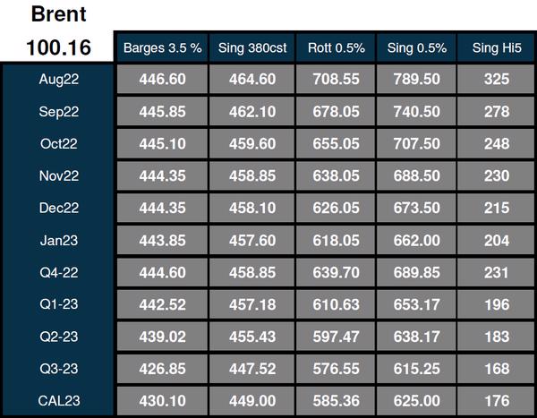 The Cal 22 fuel oil crack was valued at -12.25.