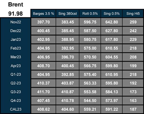 Higher crude values saw Rotterdam’s front-month HSFO barge crack to weaken by almost $1/bbl from yesterday’s settlement, to close at -$27.35/bbl today.