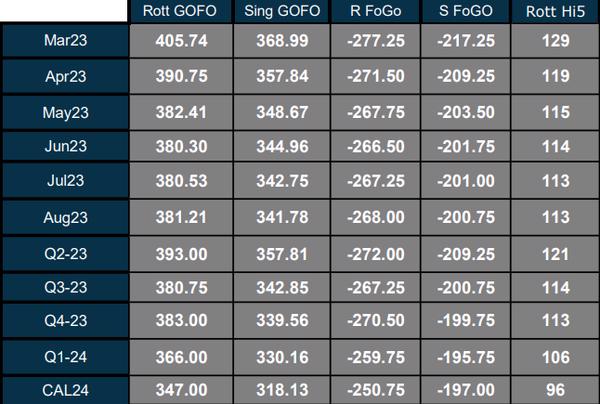 VLSFO cracks in Singapore and Rotterdam have gained by $0.35-0.40/bbl today, printing $7.50/bbl and $1.05/bbl, respectively.