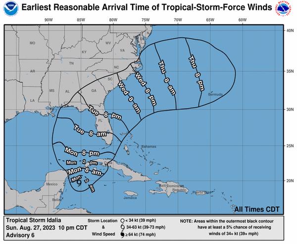 MAP: Tropical Storm Idalia’s projected path. National Hurricane Center