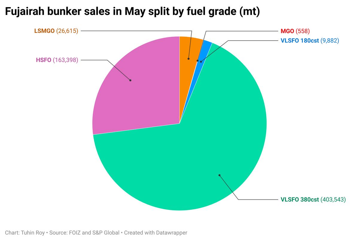 Changes in Fujairah bunker fuel sales from April to May: