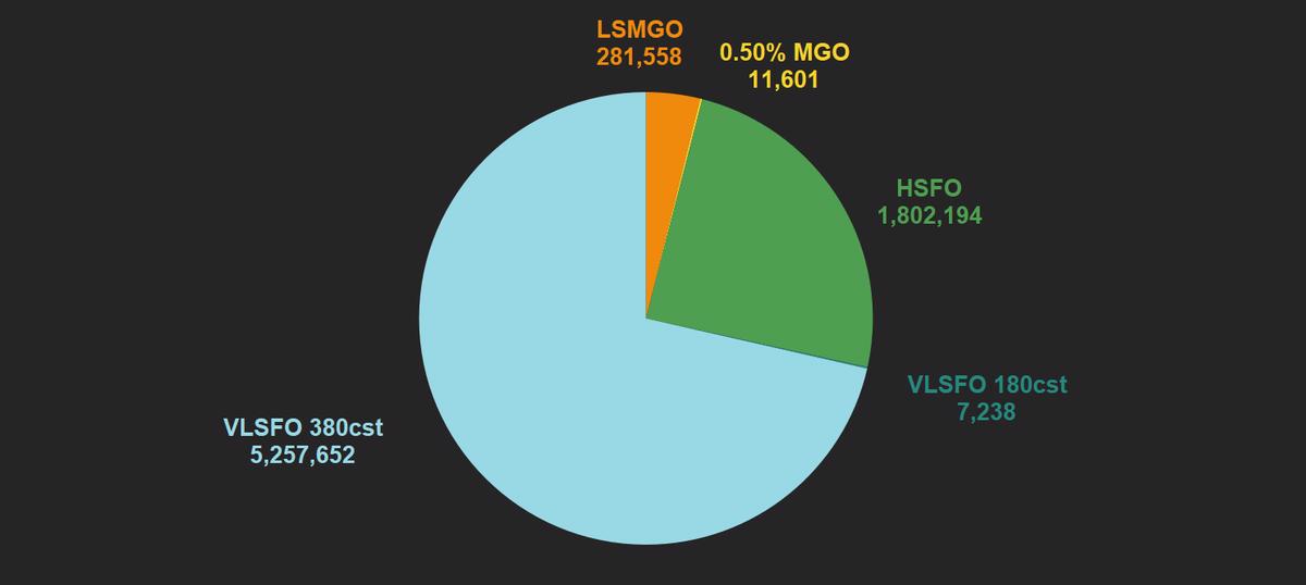 In the same time period, LSMGO sales fell by 24,000 mt to 282,000 mt. On the contrary, HSFO sales surged by 224,000 mt to 1.80 million mt in 2023.