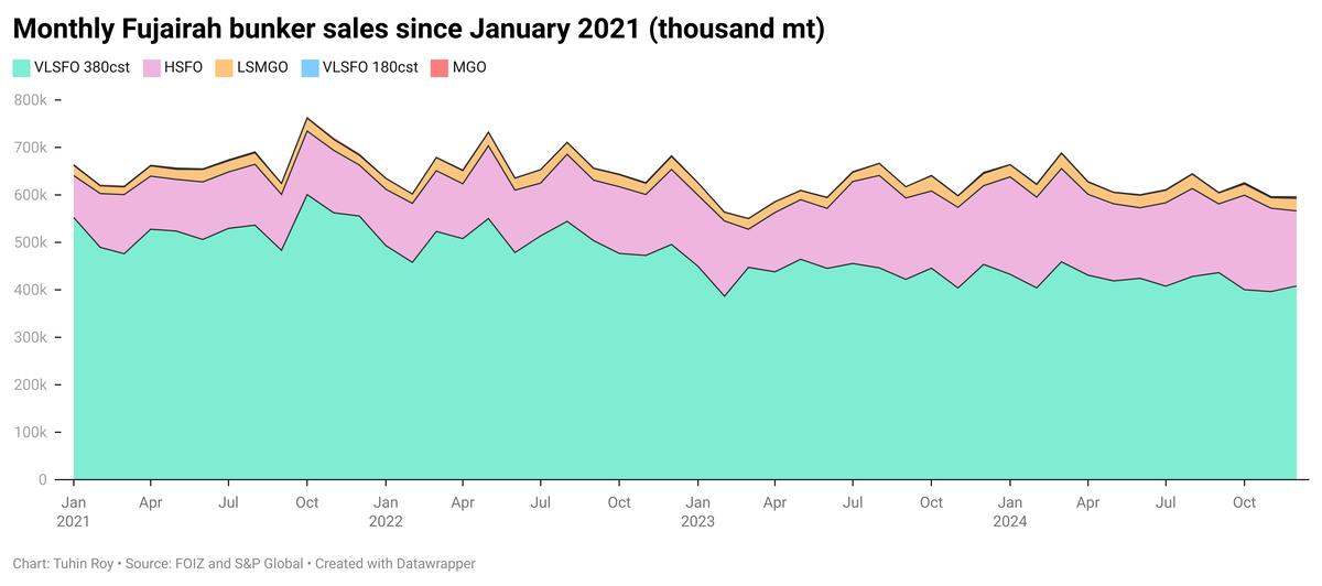 Fujairah bunker sales grew 2% in 2024 despite weaker VLSFO demand