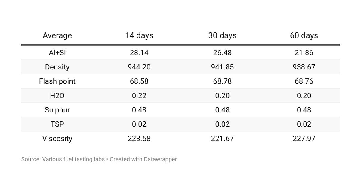 Typical VLSFO qualities in Fujairah based on 106 fuel samples over the past 14 days.