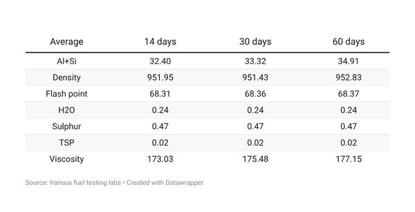 Typical VLSFO qualities in Fujairah based on 68 fuel samples over the past 14 days.
