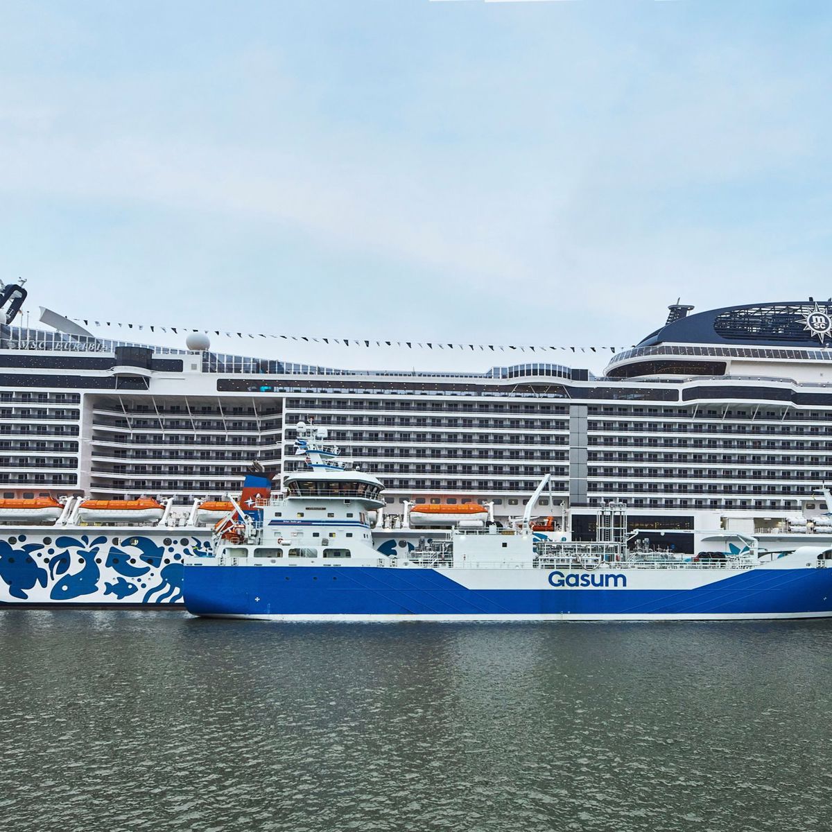 PHOTO: Gasum’s bunker vessel Kairos delivered LNG to MSC Cruises’ cruise ship MSC Euribia in Hamburg last week. Gasum