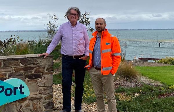 PHOTO: Fortescue Future Industries State Manager Tasmania and Victoria, Colin Paterson, with GeelongPort General Manager Commercial, Elias Anastasiou. GeelongPort