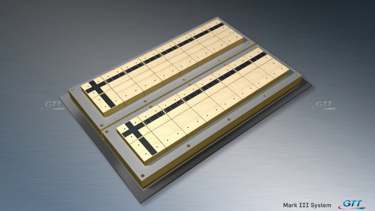 PHOTO: An illustrative model of the GTT Mark III Flex membrane containment system. GTT