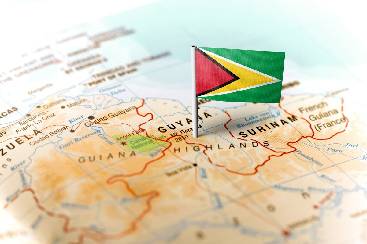 PHOTO: Guyana flag pinned on a map. Getty Images