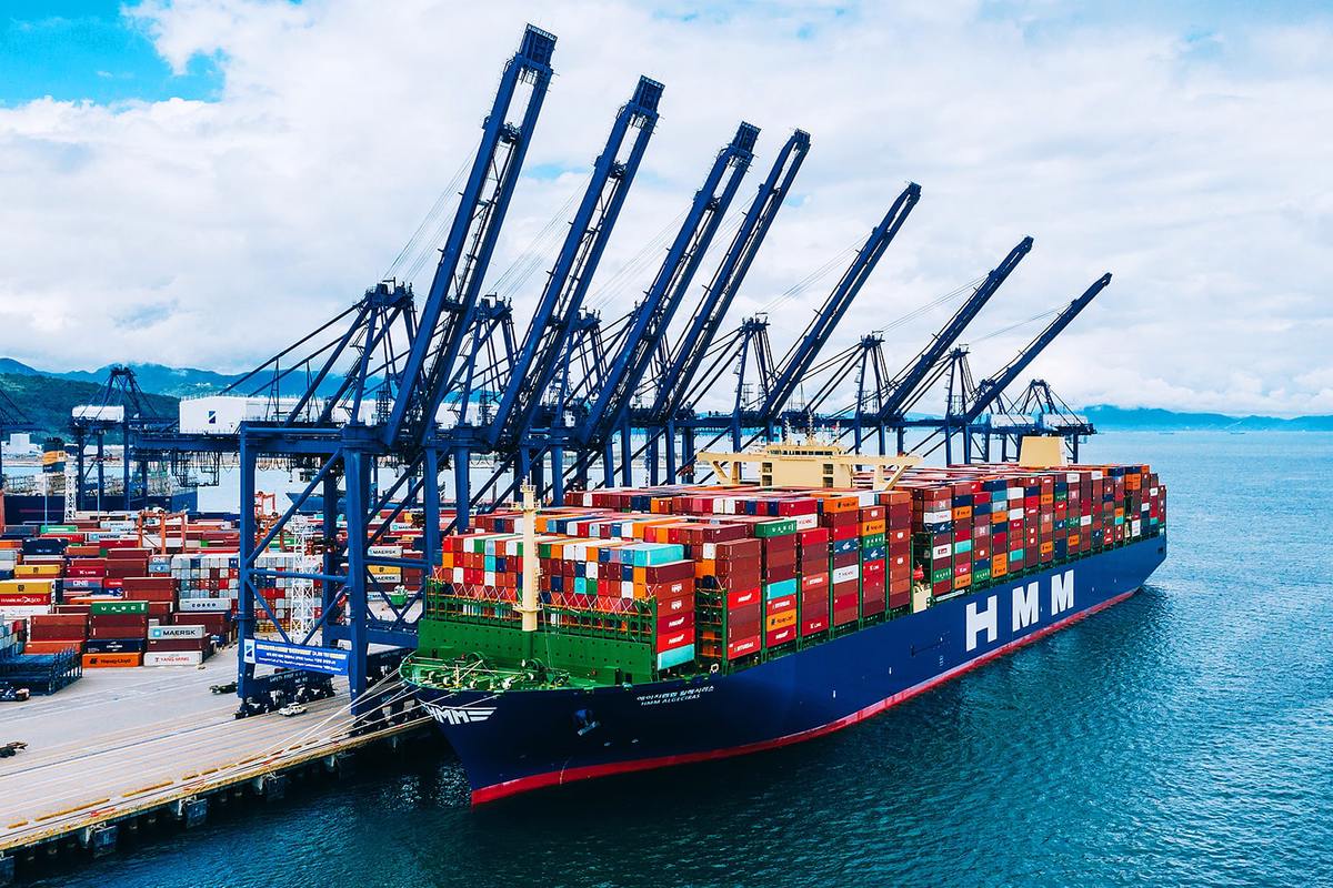 PHOTO: One of HMM's 16,000-TEU containerships docked at a port. HMM